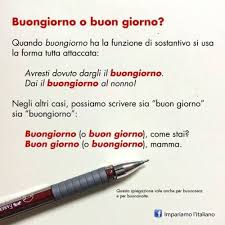 No uso corrente Buon pomeriggio é usado não para cumprimentar na chegada mas ao se despedir de alguém ao final da conversa. Quando siamo in presenza dellinteriezione cioè della formula di saluto possiamo decidere di adottare indifferentemente la forma analitica buon giorno o la forma univerbata scrizione continua. Le regole variano a seconda di dove sei.